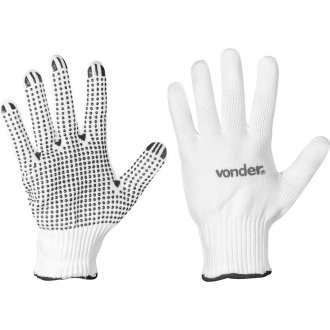 Luva de helanca pigmentada, LHV010, VONDER Branca com pigmentos de PVC cor preta Tricotada em Helanca 100% Poliéster